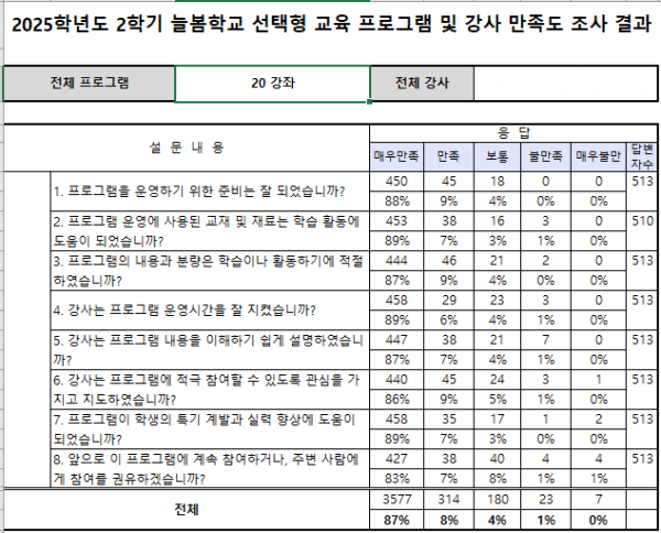 - 2025학년도 2학기 선택형 교육 프로그램 및 강사 만족도 조사 결과보호자.xlsx (52.7K) 1회 다운로드 | DATE : 2025-12-08 16:48:06