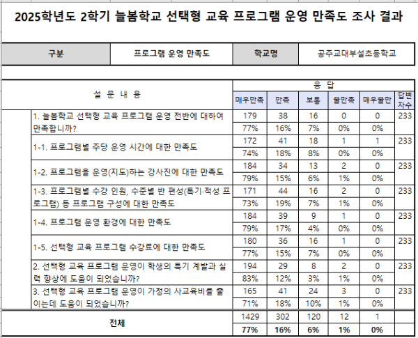 2025학년도 2학기 선택형 교육 프로그램(연계돌봄 포함) 만족도 조사 결과