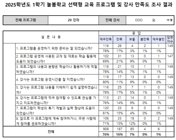 2025학년도 1학기 선택형 교육 프로그램(연계돌봄 포함) 만족도 조사 결과